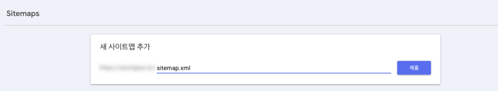 - “새 사이트맵 추가” 입력창에 사이트맵 URL 입력 (도메인 이후 경로만 입력, 예: